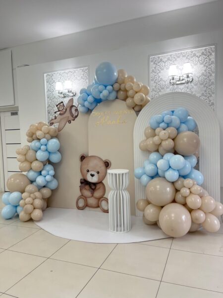 Delikatna ścianka dekoracyjna o wymiarach 3 × 2,2 m, idealna na chrzest, baby shower i rodzinne uroczystości. Jasne tło, które pięknie wygląda na zdjęciach. Minimalistyczna, uniwersalna i gotowa do efektu WOW.