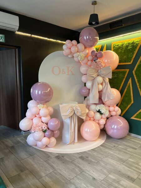 Elegancka i subtelna ścianka dekoracyjna na wynajem, idealna na chrzest, komunię, baby shower, urodziny lub eleganckie przyjęcia rodzinne. Kompozycja została zaprojektowana w jasnej, ponadczasowej kolorystyce, która pięknie wygląda na zdjęciach i pasuje do każdej sali.