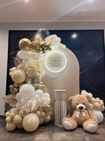 Home » Sklep » GOTOWE ZESTAWY BALONOWE » Na jaką okazję » Balony na Pierwszą Komunię Świętą » Dekoracje balonowe na Pierwszą Komunię Świętą » Ścianka na Chrzest, Roczek